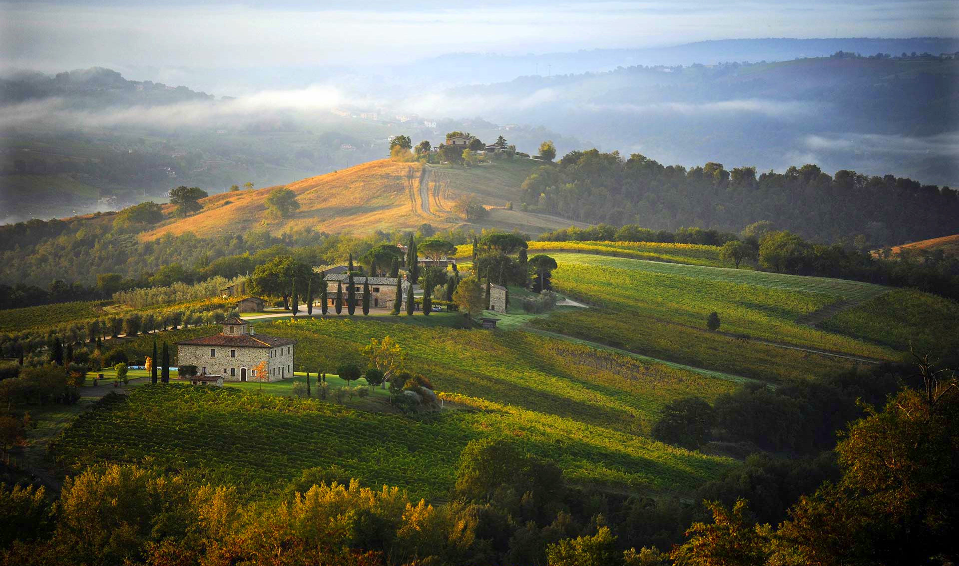 Decugnano dei Barbi ("Barbis bakke") ligger smukt i bakkerne ved Lago di Corbara ca. 20 km øst for den berømte by Orvieto i Umbrien (billedet).